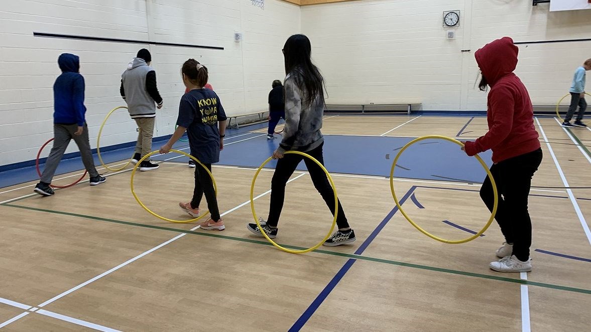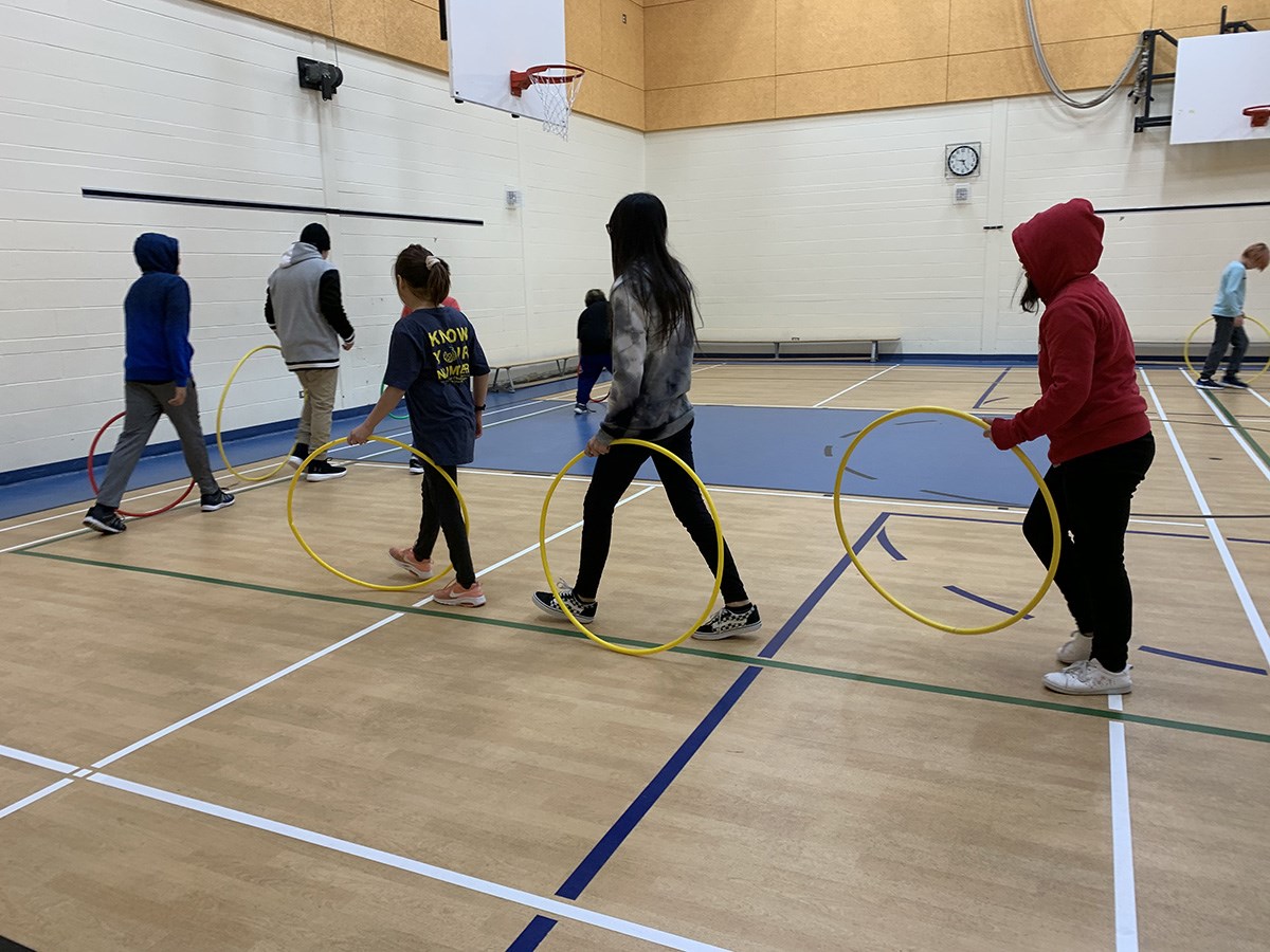 Fox Lake students enjoying indoor physical education activities August 11, 2023 Fox Lake Students enjoying the hoola-hoops brought in by Mike Thomas, MFNSS Physical Education and Health FacilitatorFox Lake students shooting hoops with Mike Thomas, MFNSS Physical Education & Health Facilitator