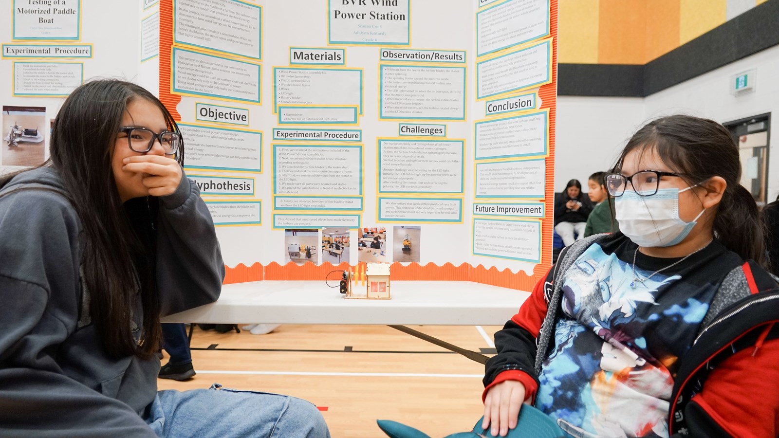 March 11, Miskooseepi School held their local Science Fair, organized and coordinated by science teacher Jasmin Masangcay. In a fun and engaging science-packed day, all grades, Nursery through Grade 10 participated in the fair, demonstrating either group projects or individual projects. All students showcased their projects for teachers and fellow students to view in the afternoon. This included a rotation of classes during viewing and presenting. Grades Nursery through to Grade 2 shared larger group projects, which they worked on together. The Kindergarten class tested a recipe to make a play-dough-like substance and made a few batches of coloured dough for viewers to test out. Students in later grades worked on independent projects such as Grade 10 student Leena Green’s project, “Comparing Scent Through Botanicals.” Leena’s project involved adding local botanical ingredients to soy wax to investigate burn rate and scent throw. The fair included interactive stations where students could further participate in scientific investigations through painting rocks, handmade pulling carts, and Snap Circuit building kits. At the end of the day, students received prizes for their participation that will help encourage their interest in science and innovation.