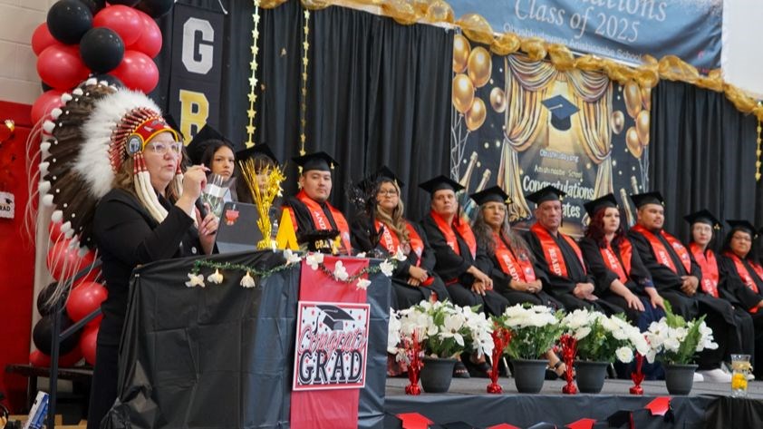 Lake St Martin School, also known as Obushkudayang School, welcomed 12 kindergarten graduates, 3 high school graduates and 12 adult education graduates and 1 honorary graduate to the stage for celebration. The school celebrated the youngest grads on June 18 and on June 19, the High School and Adult Education graduates. The ceremonies were attended by friends, family, and community members, including the chief and council from Lake St Martin and Dauphin River First Nations, and AFN National Grand Chief Cindy Woodhouse Nepinak who delivered the keynote speech.